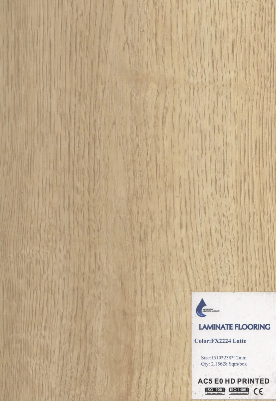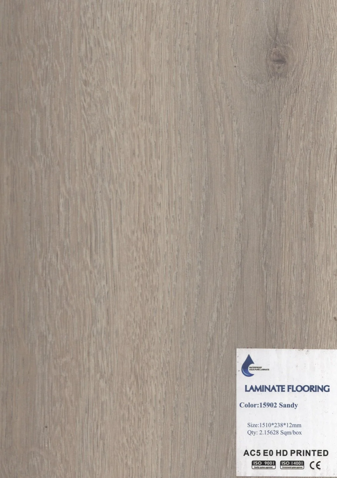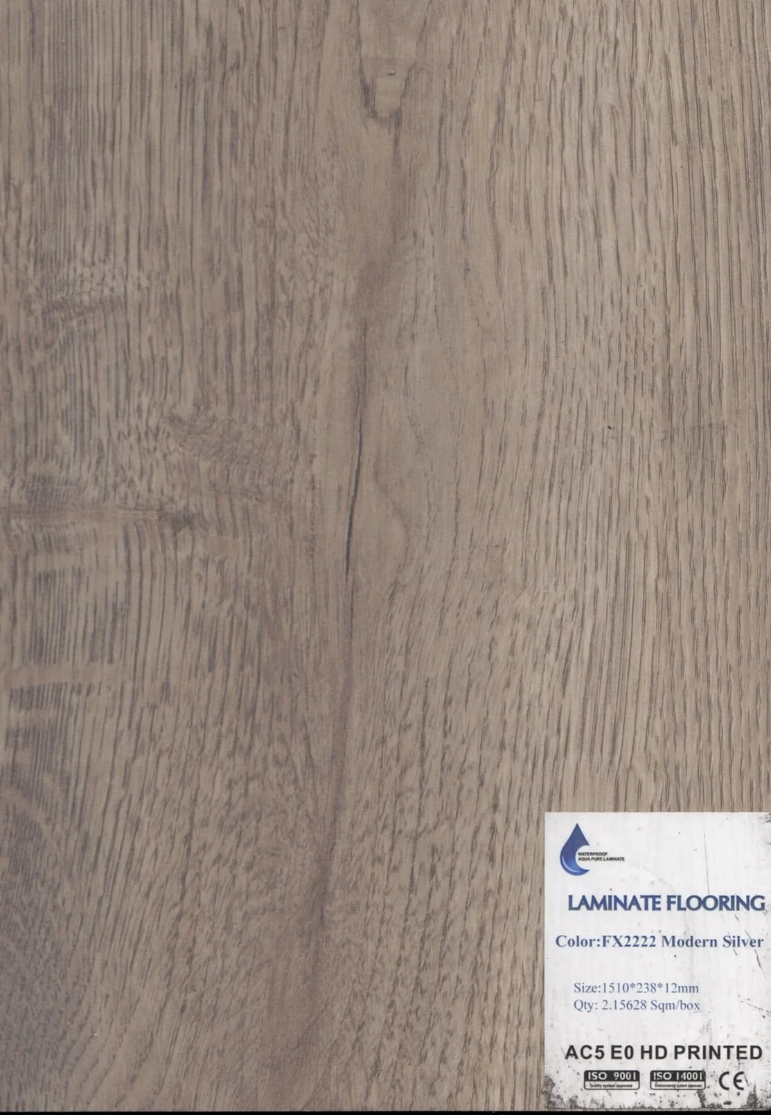 100% waterproof LAMINATE FLOORINGSize:1510*238*12mm Oty:2.15628 Sam/box Color: FX2225 Hazelnut Color: FX2222 Modern Silver Color:80187 Spotted Gum Color: FX2228 Blanched Almon Color: 15902 Sandy Color: FX2224 Latte Color: FX2226 classical Color: 15908 Modern City